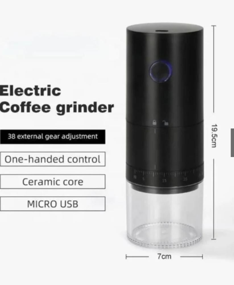 - طاحونة قهوة كهربائية محمولة ومثالية للاستخدام في السفر والتنزه والتخييم.