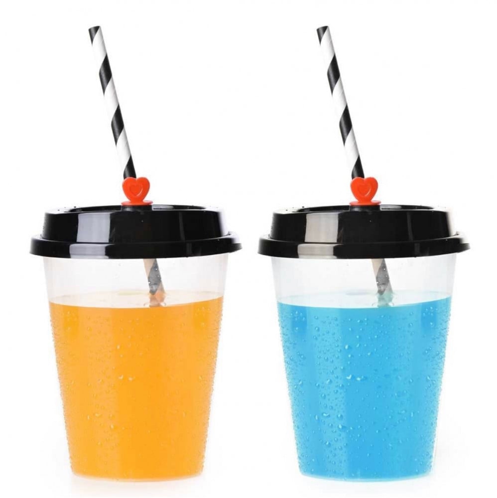 Cups for juices, mojitos and iced juices in the summer. Newly designed cups with a wonderful style made of transparent plastic.